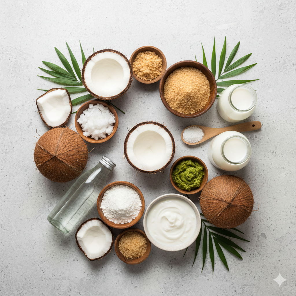 Sustainable coconut derivatives sourced from traditional coastal farms.